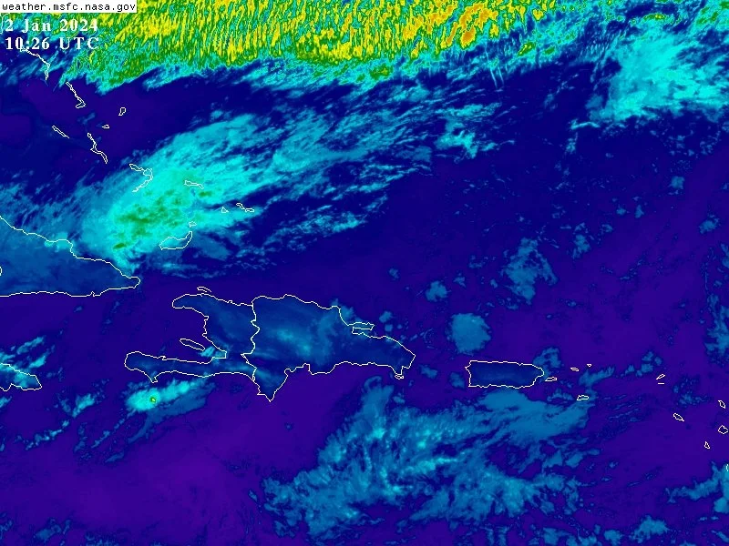 Para hoy, martes tendremos sobre el país, un ambiente de nubes dispersas a medio nublado, con algunas ocurrencias de lluvias por arrastre del viento durante las horas matutinas sobre La Altagracia, El Seibo, Hato Mayor y Samaná, pudiendo afectar provincias cercanas. Prevemos que para esta tarde, varias vaguadas y los campos nubosos del desintegrado sistema frontal, serán arrastrados por el viento de componente este/noreste, generando nublados con lluvias dispersas acompañadas de ráfagas en la zona fronteriza, la Cordillera Central, valle del Cibao y algunos puntos del sureste. Entrada la noche, estas precipitaciones seguirán ocurriendo en las zonas antes mencionadas y trasladándose a sectores del norte, nordeste y sureste.