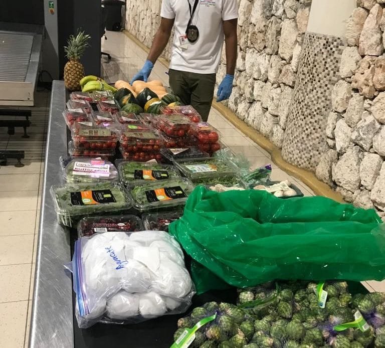 Técnicos del servicio de Inspección de Cuarentena Vegetal (AIPC) del Ministerio de Agricultura en el Aeropuerto Punta Cana, decomisaron un alijo de frutas y vegetales que un artista de renombre internacional intentó entrar por la terminal aérea.