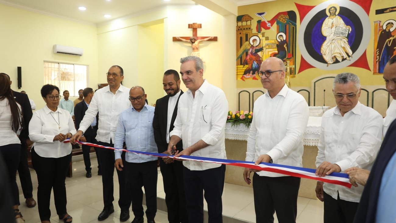 Santo Domingo.– El presidente Luis Abinader inauguró el remozamiento de la Parroquia Santa María Madre de Dios, en el sector Mendoza, ejecutado por el Banco de Reservas.