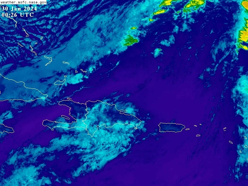 Hoy, durante las horas matutinas, se generarán lluvias débiles a moderadas, siendo fuertes localmente, con posibles tronadas y ocasionales ráfagas de viento, debido a la incidencia de un sistema frontal, sobre provincias como: Montecristi, Dajabón, Valverde, Puerto Plata, Espaillat, Hermanas Mirabal y San Cristóbal.