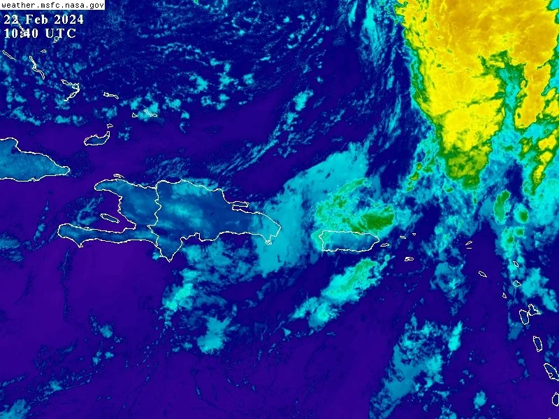 El sistema frontal se aleja del territorio dominicano, quedando nuestra área de pronóstico bajo la incidencia de una masa de aire con menos contenido de humedad, lo que inducirá a que las formaciones de nubes significativas estén limitadas y no se generen precipitaciones importantes.