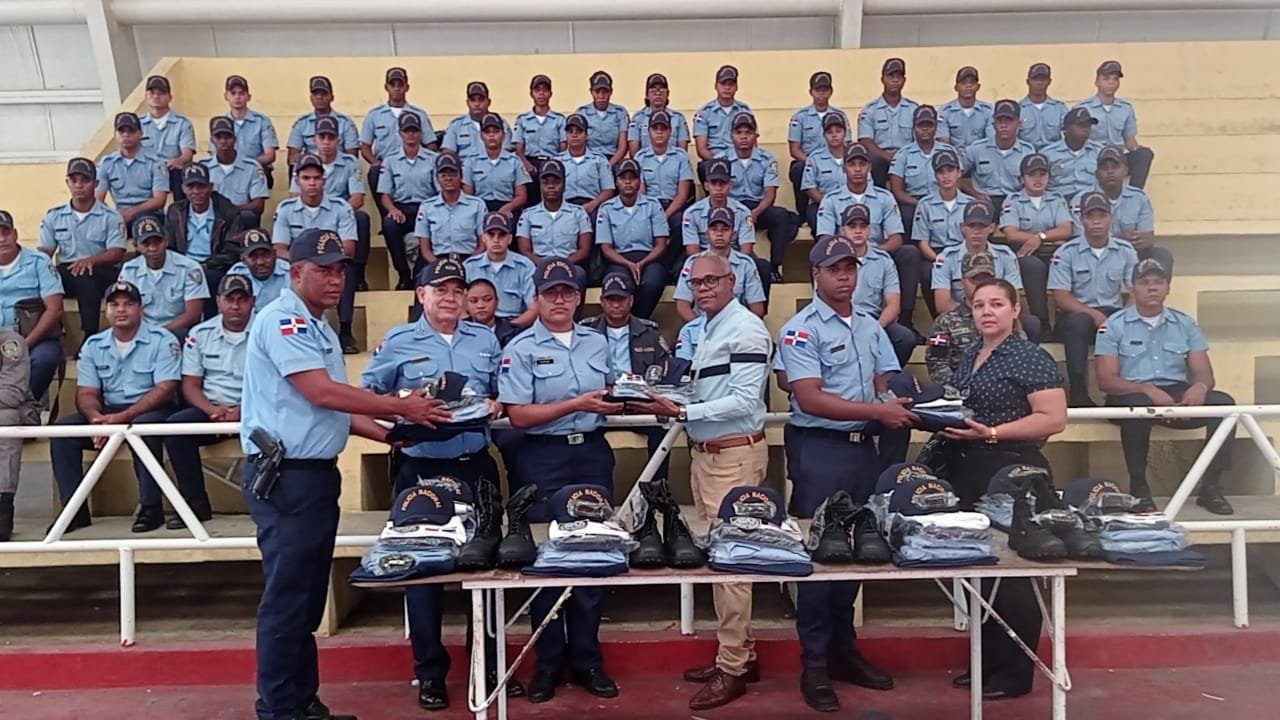 Dajabón, RD.- El Ministerio de Educación a través de la Policía Nacional entrego uniformes a miembros de la policía escolar en este municipio Fronterizo.