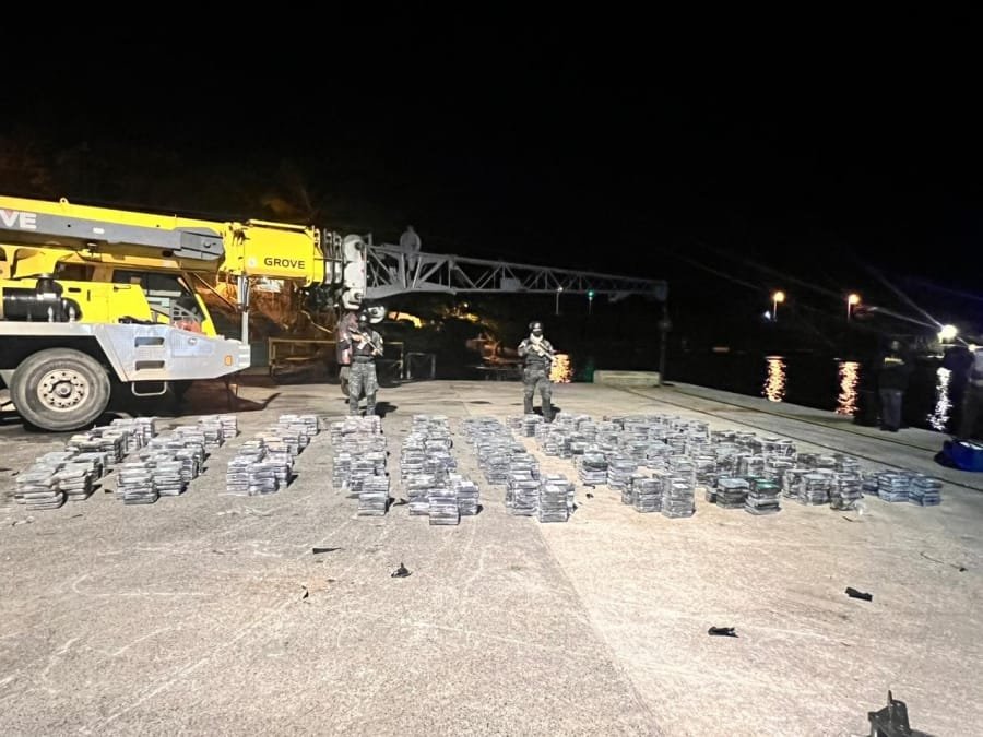 De manera simultánea, equipos de apoyo y reacción, abordaron la embarcación, encontrando en su interior, 57 pacas envueltas en fundas negras, conteniendo un total de 1.407 paquetes de la sustancia, que se presume es cocaína.