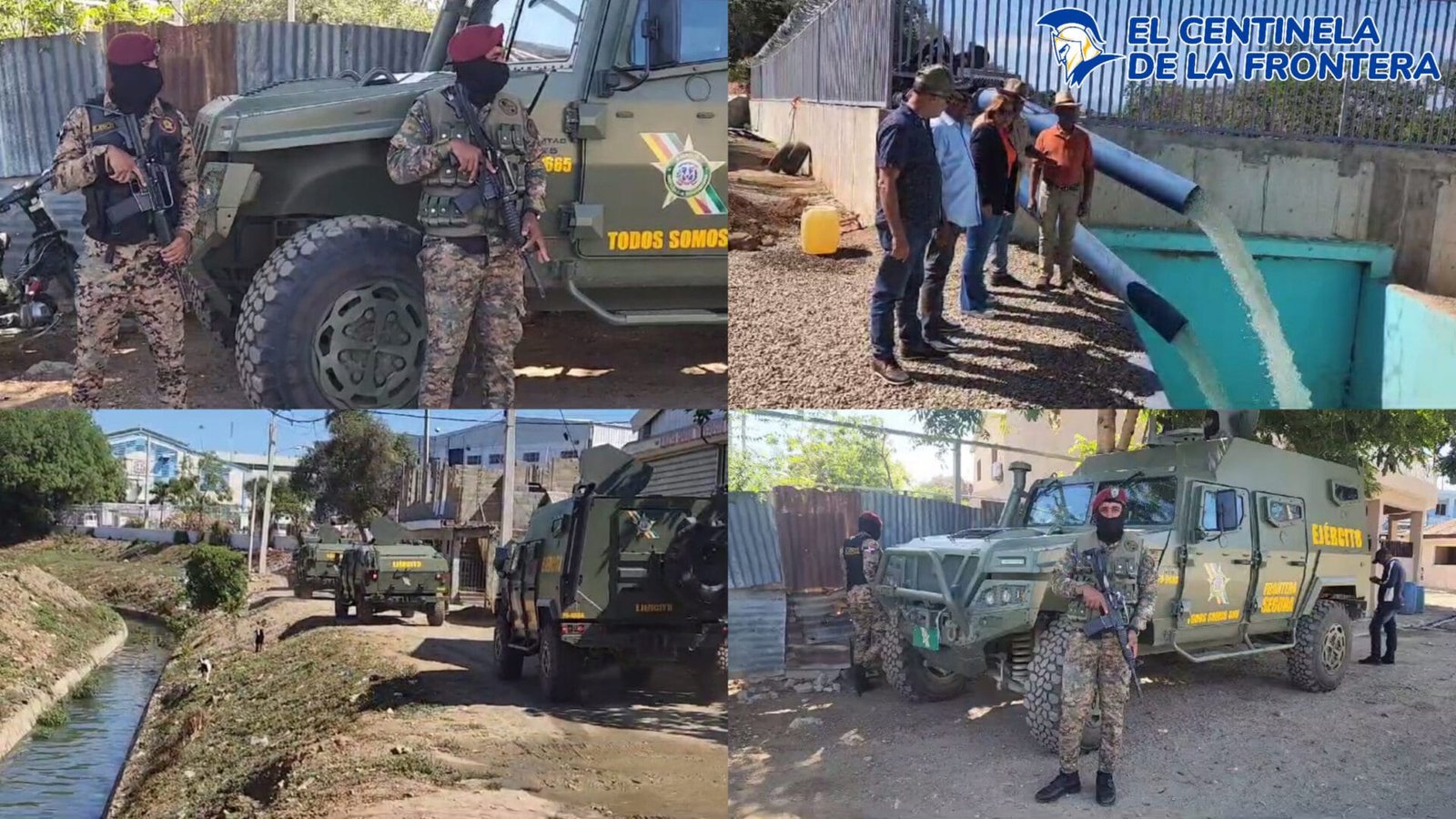 Dajabón, República Dominicana.- Con unidades blindadas acompañadas de un amplio contingente militar del Ejército Dominicano, fue reforzada la seguridad en la zona de la estación de bombeo de canal de la Vigía, situada en la toma del Río Masacre, en esta ciudad fronteriza de Dajabón, ante cualquier tipo de eventualidad que se pueda suscitar.