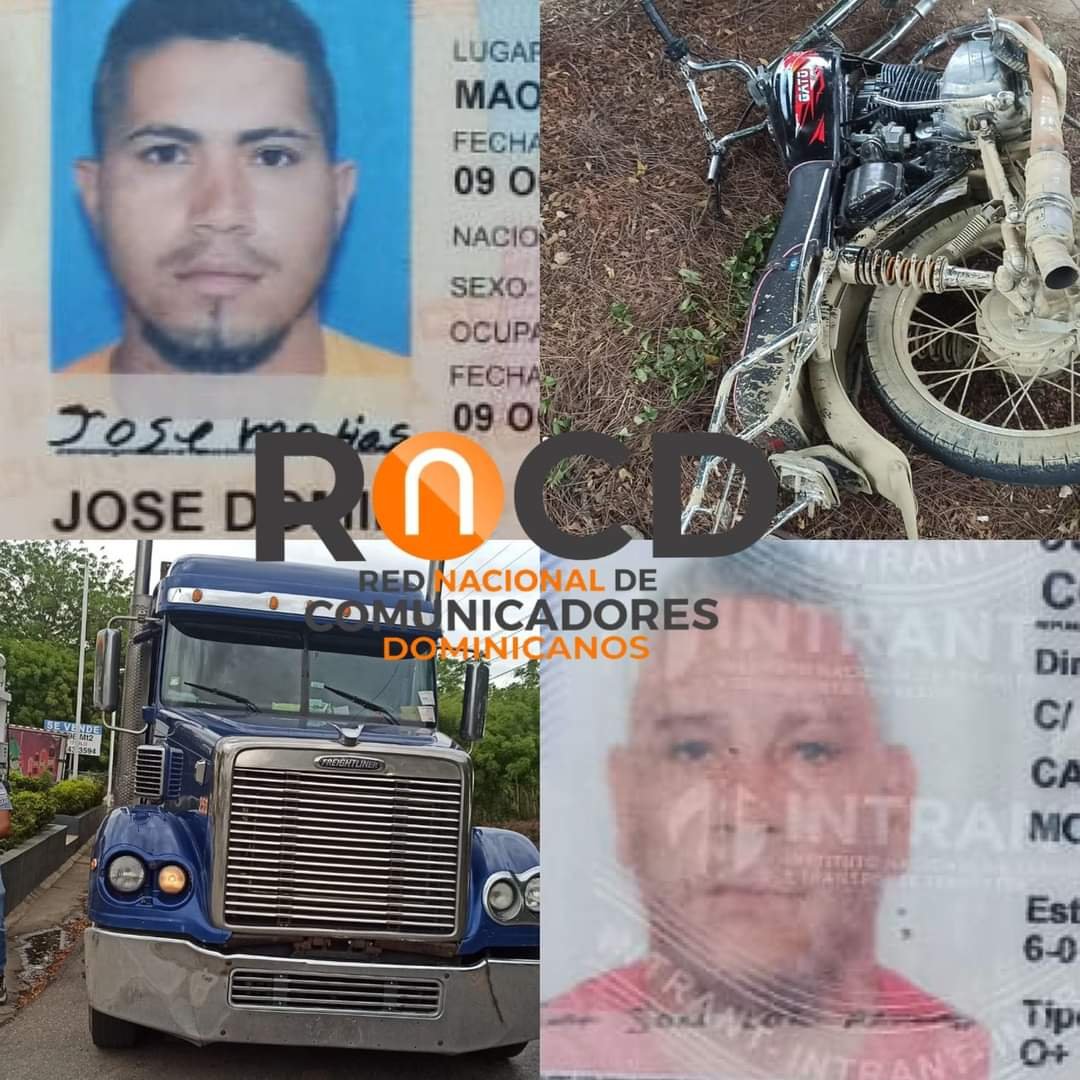 El fallecido respondía al nombre de José Domingo Matías Álvarez, de 28 años de edad, quien se desplazaba en una motocicleta marca CG, color negro, oriundo del municipio de Mao, mientras que el conductor del camión tipo patana marca Freightliner, modelo Coronado 132, color azul, fue identificado como Juan Joel Colón Almonte, oriundo del distrito municipal de Cana Chapetón Provincia Montecristi.
