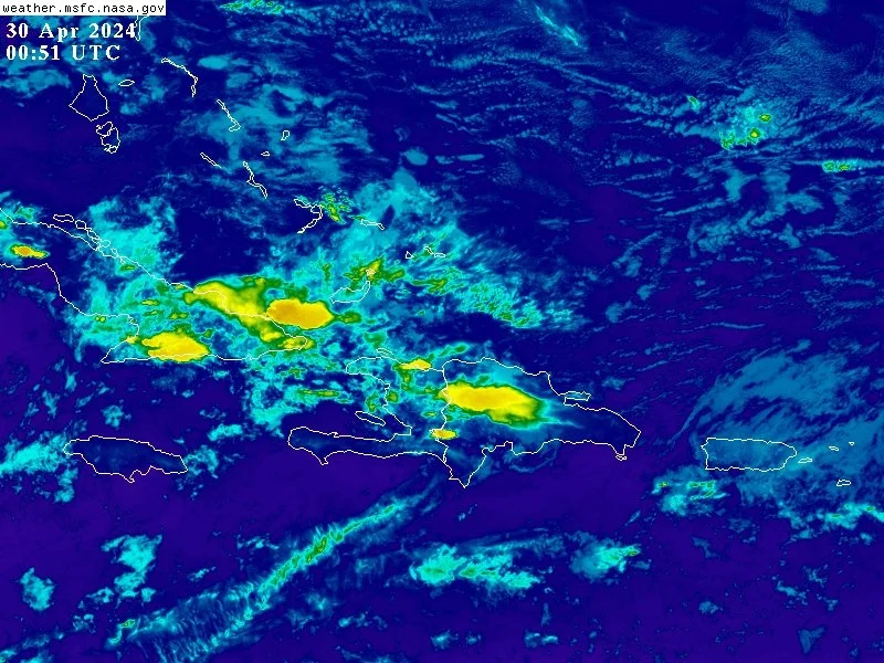 Las condiciones del tiempo no presentan cambios de importancia, durante las horas matutinas se observan algunos desarrollos nubosos que provocan chubascos dispersos y pasajeros sobre las provincias de la Altagracia, El Seibo y Hato Mayor, inducido por los efectos del viento del este y el acercamiento de una vaguada en diferentes niveles de la troposfera, la cual se ubica en la porción central de Cuba.