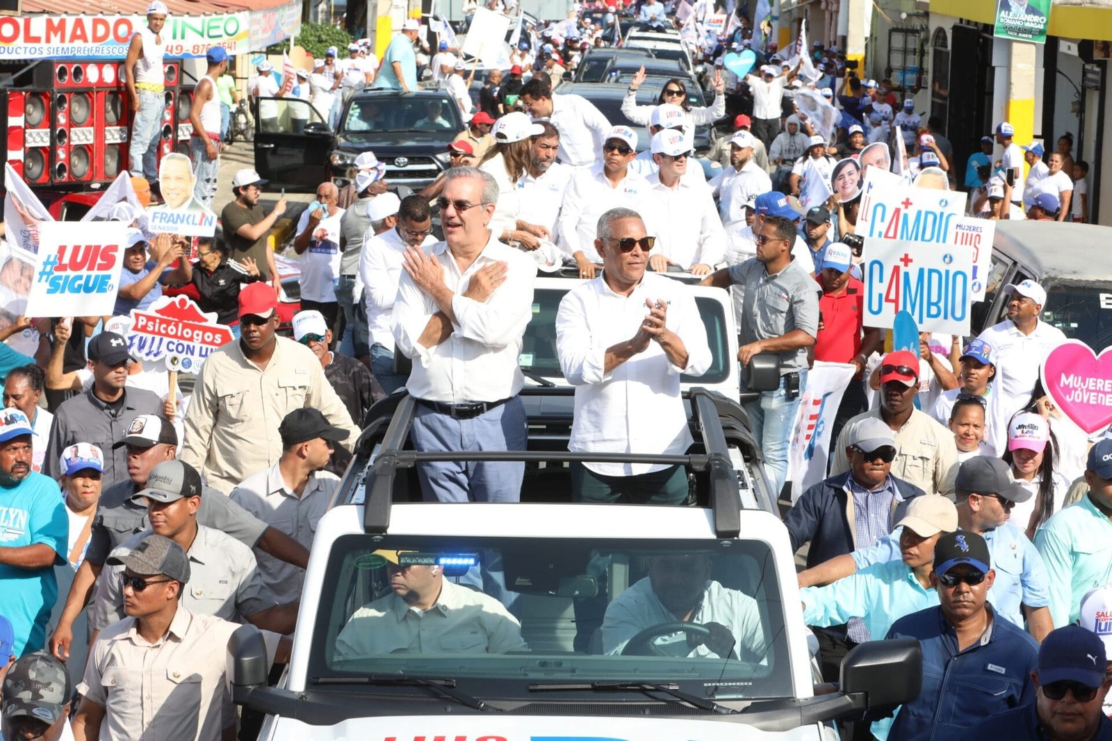 Abinader acompañó al candidato a senador por la provincia Duarte, Franklin Romero y a los candidatos a diputados, José Luis Rodríguez Hiciano, Luis Tomás Marte Santos, Nicolás Hidalgo Almánzar, Jeovanny Ventura Rivera y Dorina Yajaira Rodríguez Salazar.