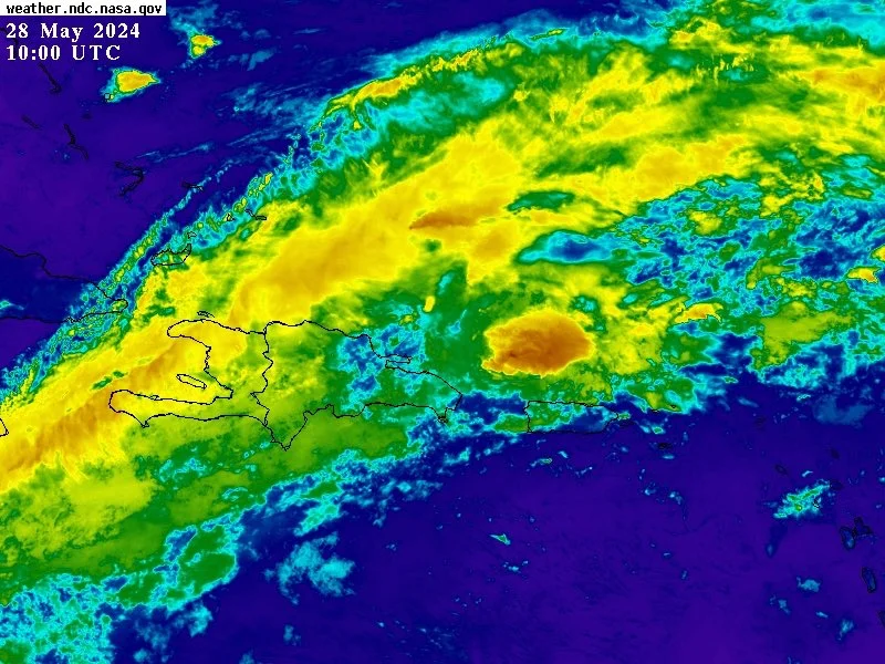Hoy martes, el ambiente meteorológico continúa con bastante humedad e inestabilidad sobre nuestro territorio, debido al paso de la onda tropical y la vaguada en altura sobre la porción oriental de Cuba, los cuales, favorecerán desarrollos nubosos con aguaceros, siendo moderados a fuertes localmente, tormentas eléctricas y ráfagas de viento en diferentes provincias como: La Altagracia, El Seibo, La Romana, Hato Mayor, San Pedro de Macorís, Monte Plata, Sánchez Ramírez, Duarte, María Trinidad Sánchez, Samaná, Santiago, La Vega, Monseñor Nouel, Santiago Rodríguez, San Juan, Azua, Elías Piña, entre otras cercanas. Dichos aguaceros serán más notorios durante la tarde y primeras horas de la noche.