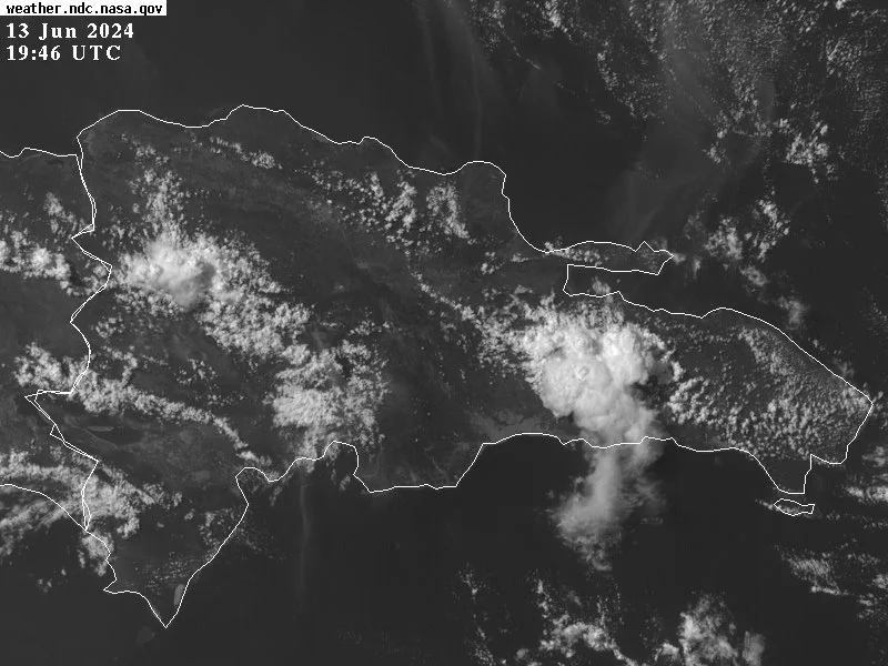 Se predice que el patrón atmosférico no mostrará cambios apreciables durante el día de hoy,  predominando un cielo poco nuboso, soleado y brumoso, Sin embrago, la interacción del viento predominante del este/sureste con los efectos de calentamiento diurno y orográfico podrían originar en horas vespertinas, leves incrementos nubosos con chubascos locales y tronadas distanciadas, especialmente hacia las provincias: Santiago Rodríguez, Dajabón, San Juan, La Vega, Santiago y La Altagracia.
