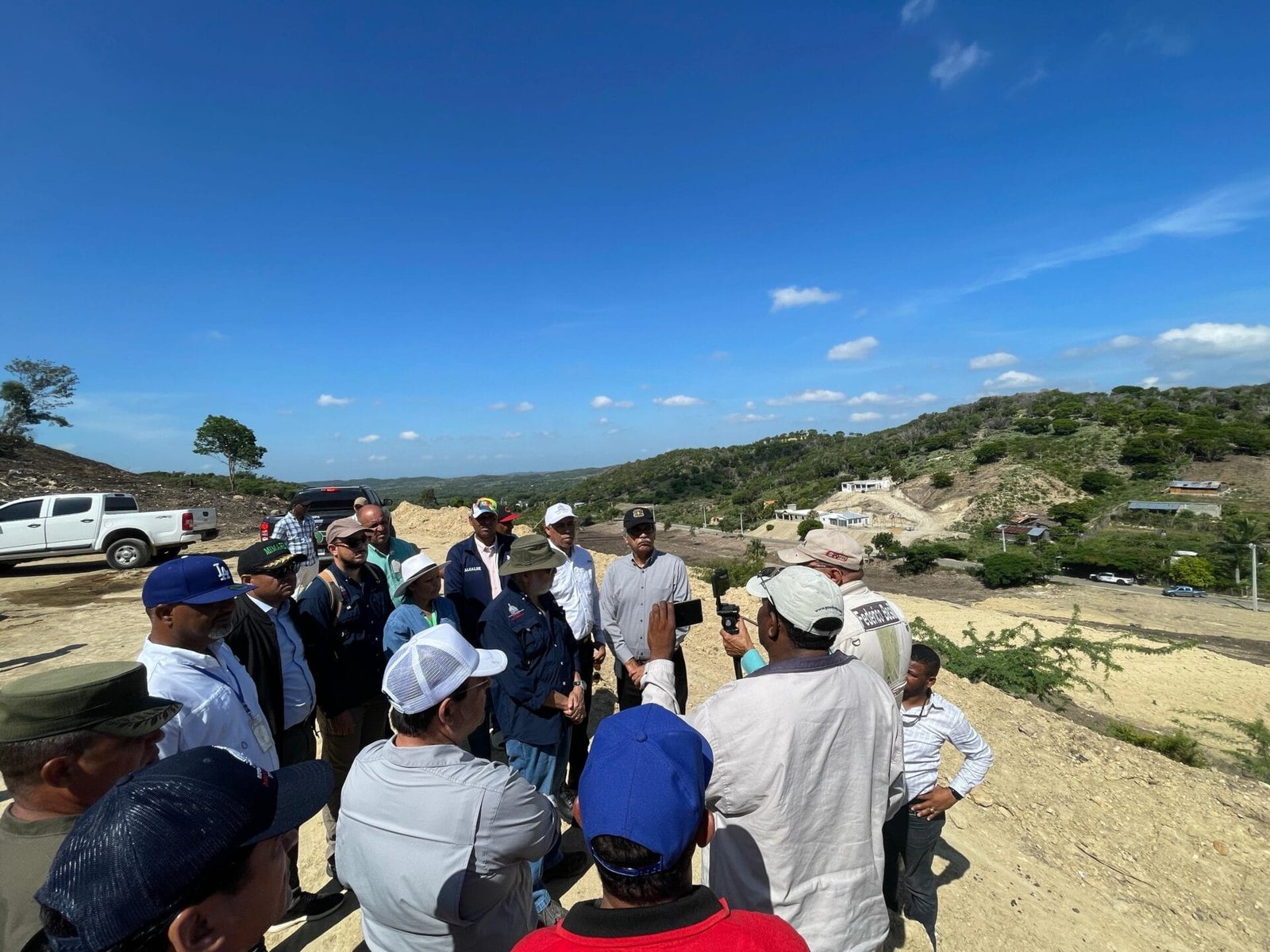 - Como parte de su recorrido por la zona, conversa con el alcalde de Villa Vázquez y presenta al nuevo encargado provincial de Medio Ambiente en Montecristi