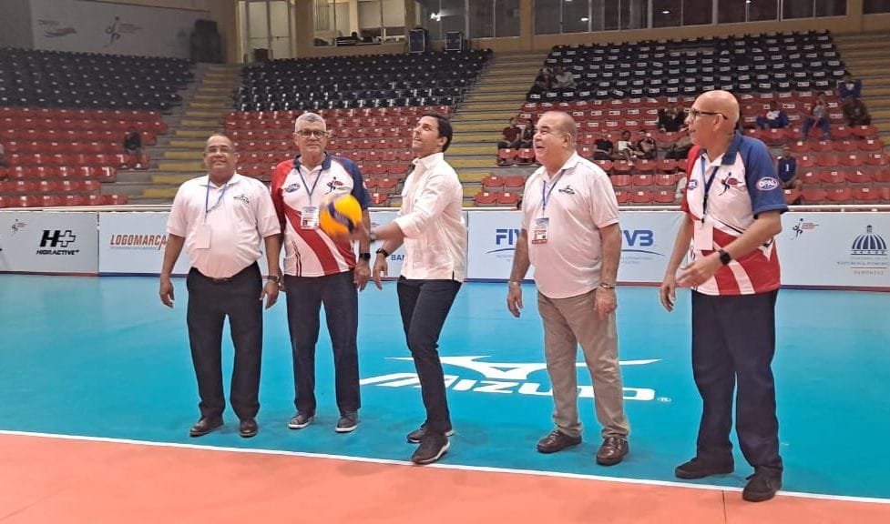 En representación del Presidente de Banreservas, Samuel Pereyra, Raymond Rodríguez realiza saque de honor en XVII Copa Panamericana de Voleibol Masculino