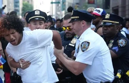 El periódico The New York Post publicó que las autoridades pararon abruptamente el desfile en la Sexta Avenida cuando una multitud enorme y rebelde invadió la ruta en el centro de Manhattan y un adolescente cortó a un hombre en la cara.