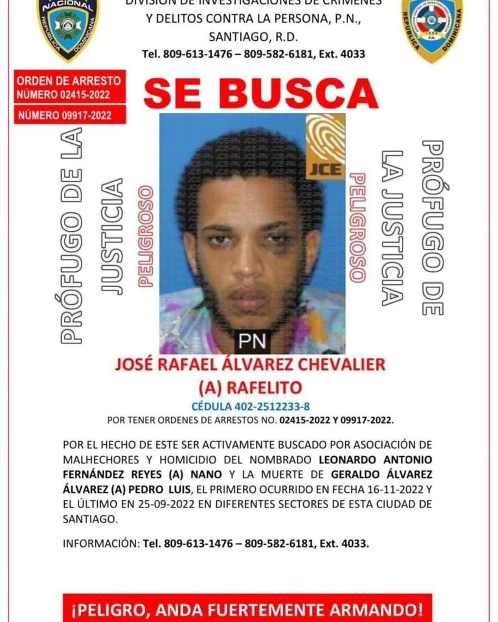 La víctima de acuerdo con una ficha policial, es José Rafael Álvarez Chevalier (Rafelito), quien se encontraba prófugo de la justicia acusado de asociación de malhechores y homicidio del señor Leonardo Antonio Álvarez (nano) y la muerte de Geraldo Álvarez (Pedro Luis).