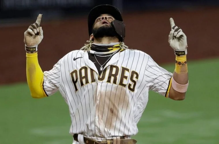 El astro dominicano de 25 años disparó un jonrón monumental de dos carreras, en su primer swing dentro de los playoffs en cuatro años, y los San Diego Padres vencieron el martes 4-0 a los Atlanta Braves en el encuentro inicial de la serie de comodines de la Liga Nacional.
