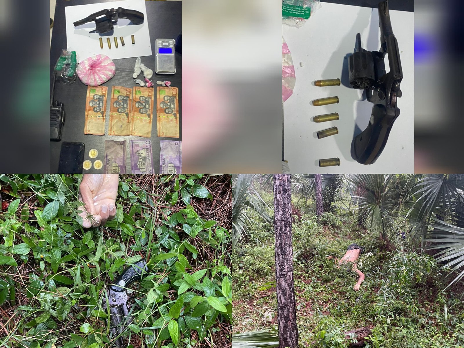 El cuerpo presentaba un orificio por arma de fuego con entrada a nivel occipital y salida en parental izquierda. Se colectó el revólver calibre 38, marca Taurus, serial 744888, que según la Policía utilizó para enfrentar a la patrulla policial actuante.