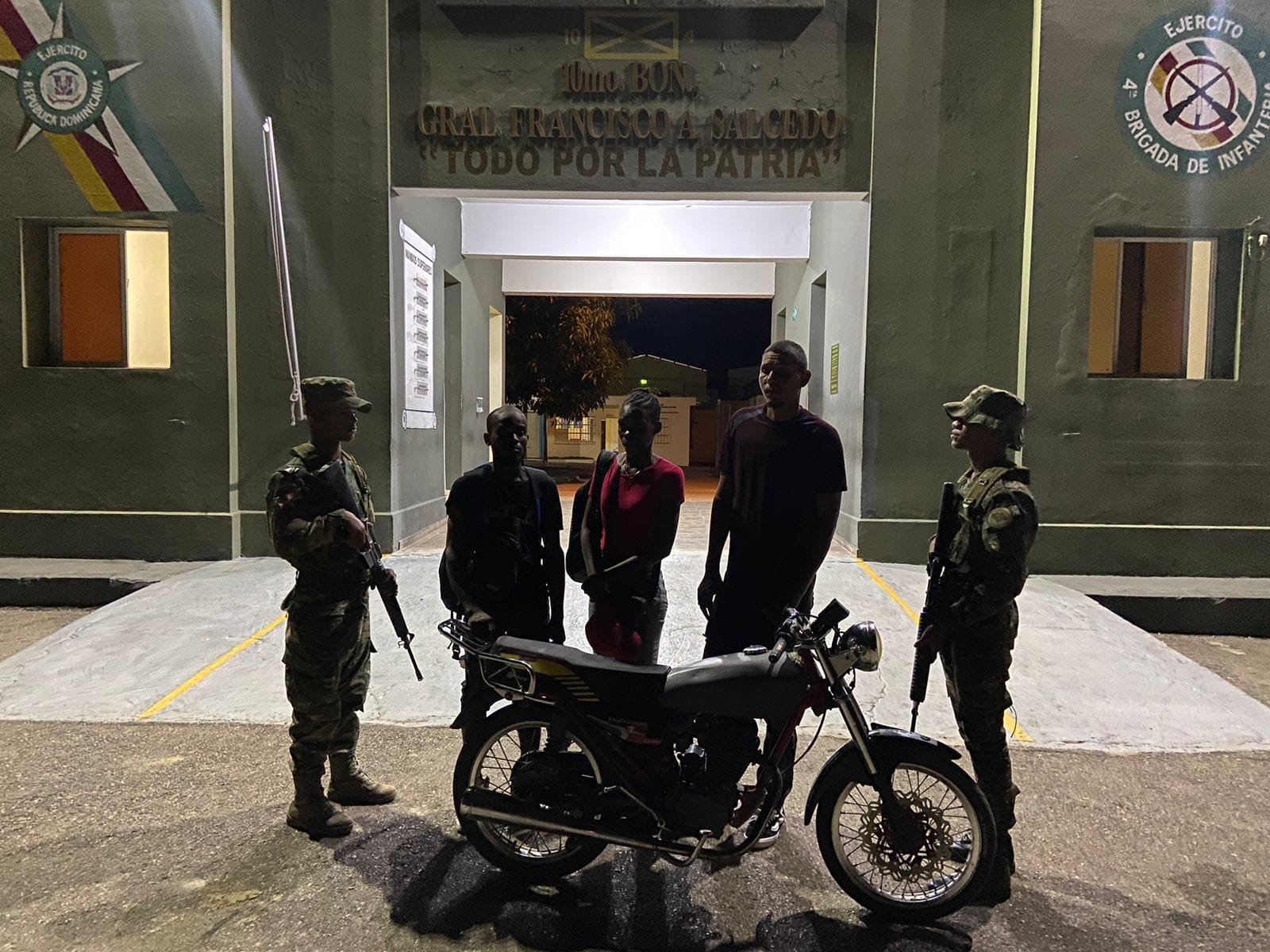 Los haitianos indocumentados, una mujer y un hombre, fueron entregados a la Dirección General de Migración (DGM), para ser depurados y devueltos a su País. Mientras que el dominicano se encuentra bajo custodia en la Fortaleza Beller, sede del 10mo. Batallón de Infantería, para ser presentado ante la Fiscalía de la provincia de Dajabón, donde será llevado a cabo su sometimiento.
