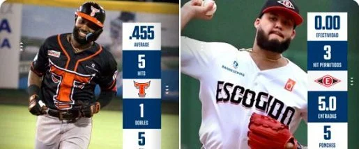 Fabián, en ofensiva, y Santos, desde el montículo, fueron los jugadores de mejor rendimiento en el campeonato de béisbol invernal dominicano en el período del 4 al 10 de noviembre.