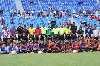 Más de 1,200 futbolistas recorrieron el renovado terreno del estadio olímpico Félix Sánchez con la celebración de la actividad llamada “Juguemos fútbol en el olímpico”.