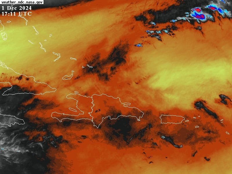 El tiempo atmosférico del territorio dominicano, no presentará modificaciones apreciables durante el transcurso de las horas matutinas, predominando un cielo con escasas nubes en casi toda la geografía nacional, sin embargo, después del mediodía la combinación de una vaguada que estará al norte de nuestro territorio con los efectos locales (calentamiento diurno y orográfico) y la incidencia del viento predominante del este/sureste, estarán aumentando los nublados acompañados de aguaceros locales, tronadas y aisladas ráfagas de vientos, principalmente en las provincias: Monte Plata, Sánchez Ramírez, Monseñor Nouel, La Vega, Santiago, Puerto Plata, Espaillat, San Cristóbal y el Gran Santo Domingo, en especial la parte norte.