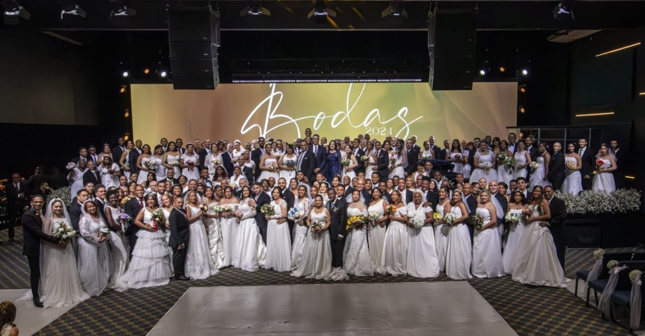 Santo Domingo.- Contrario al ambiente que vive la sociedad en estos tiempos, donde la violencia intrafamiliar y la desintegración en los hogares está causando divorcios y desorientación en la juventud, el Ministerio Internacional Monte de Dios Horeb celebró su acostumbrada Boda Colectiva 2024, en la que 88 parejas contrajeron nupcias, consagrando sus matrimonios para Dios.