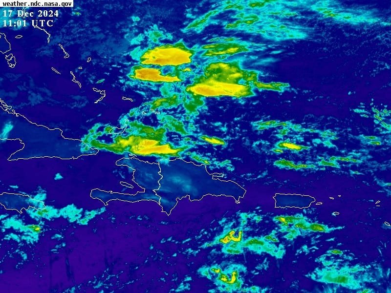 Chubascos dispersos por viento del este/noreste y vaguada se esperan para este martes 17 de diciembre