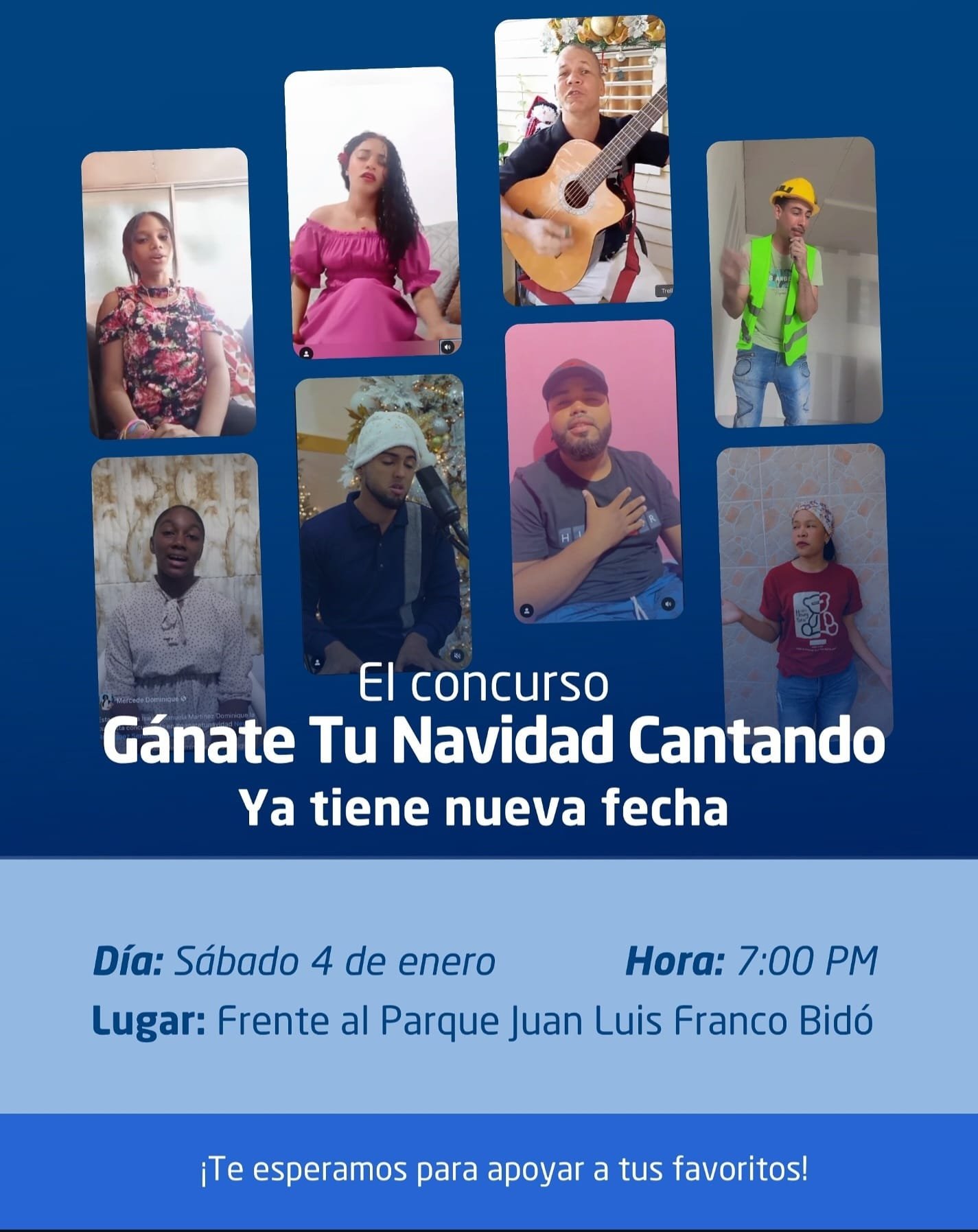 El esperado concurso “Gánate Tu Navidad Cantando¨ se llevará a cabo este sábado 4 de enero de 2025, frente al parque Juan Luis Franco Bidó de Dajabón, a partir de las 7:00 PM.
