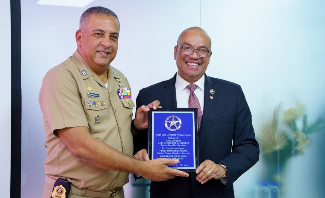 El Servicio de Marshals de Estados Unidos (USMS) entregó una placa de reconocimiento al Director General de Migración de República Dominicana, Vicealmirante Luis Rafael Lee Ballester, ARD.