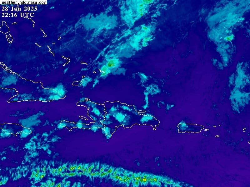 Sin embargo, los efectos locales calentamiento diurno y orográfico junto al viento del este, que estarán generando arrastre de nubosidad para dar lugar a que ocurran lluvias dispersas y pasajeras en horas de la tarde hacia las localidades de las regiones noreste, sureste y la cordillera Central, provincias como: Hato Mayor, Samaná, Monte Plata, Sánchez Ramírez, Puerto Plata, Santiago y San Juan.