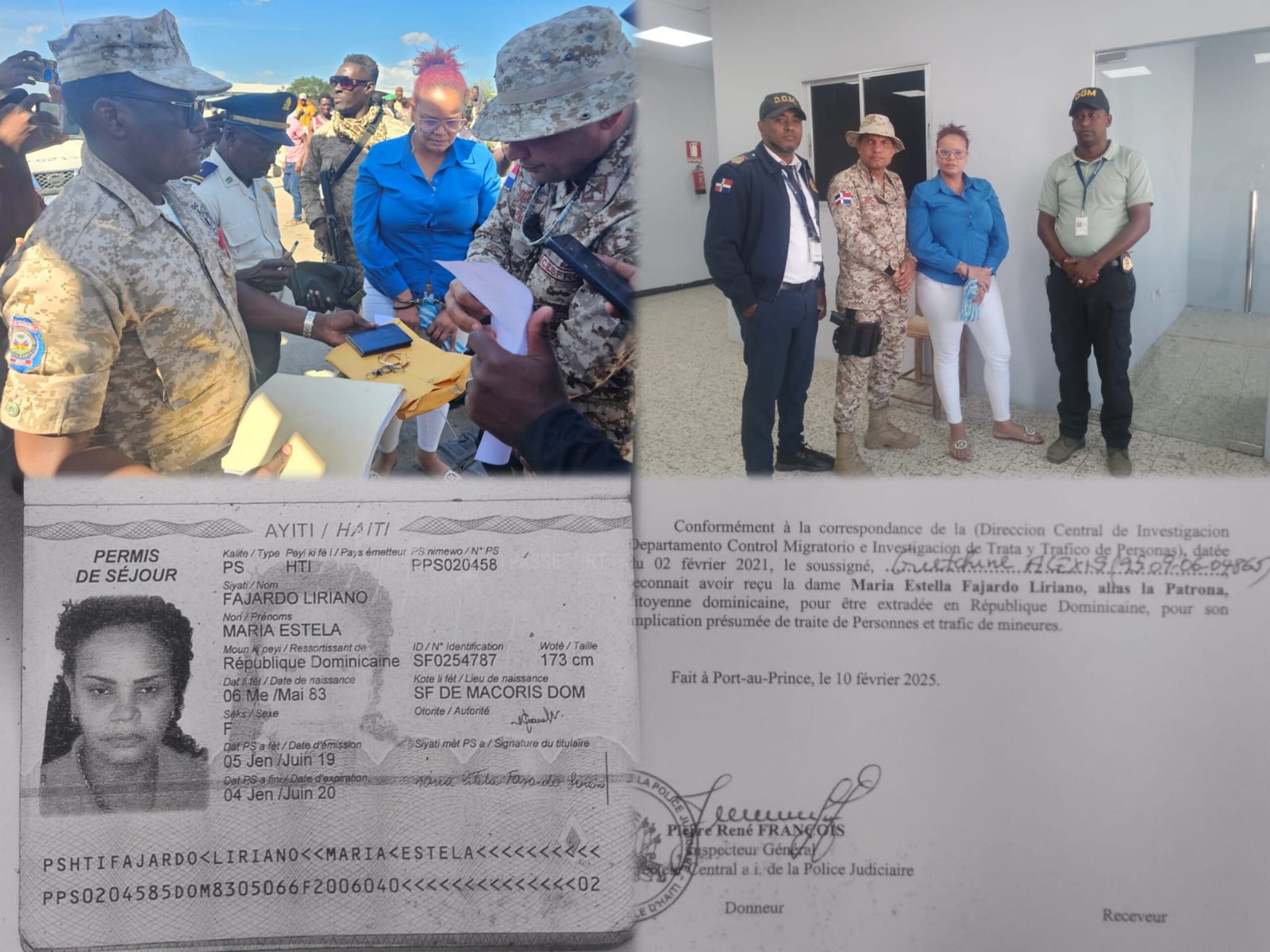 La detenida es la nombrada María Estela Fajardo Liriano, quien según las investigaciones es propietaria de un club en la comuna de Tabarre, Haití, denominado "La Patrona", la cual fue apresada en Puerto Príncipe, el lunes 3 de febrero del año en curso, a solicitud de las autoridades de la República Dominicana.
