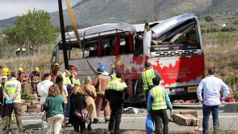 Según una primera reconstrucción de los hechos, el autobús impactó contra un camión que circulaba por delante suyo, y acabó colisionando contra otros dos camiones y chocando contra una barandilla.