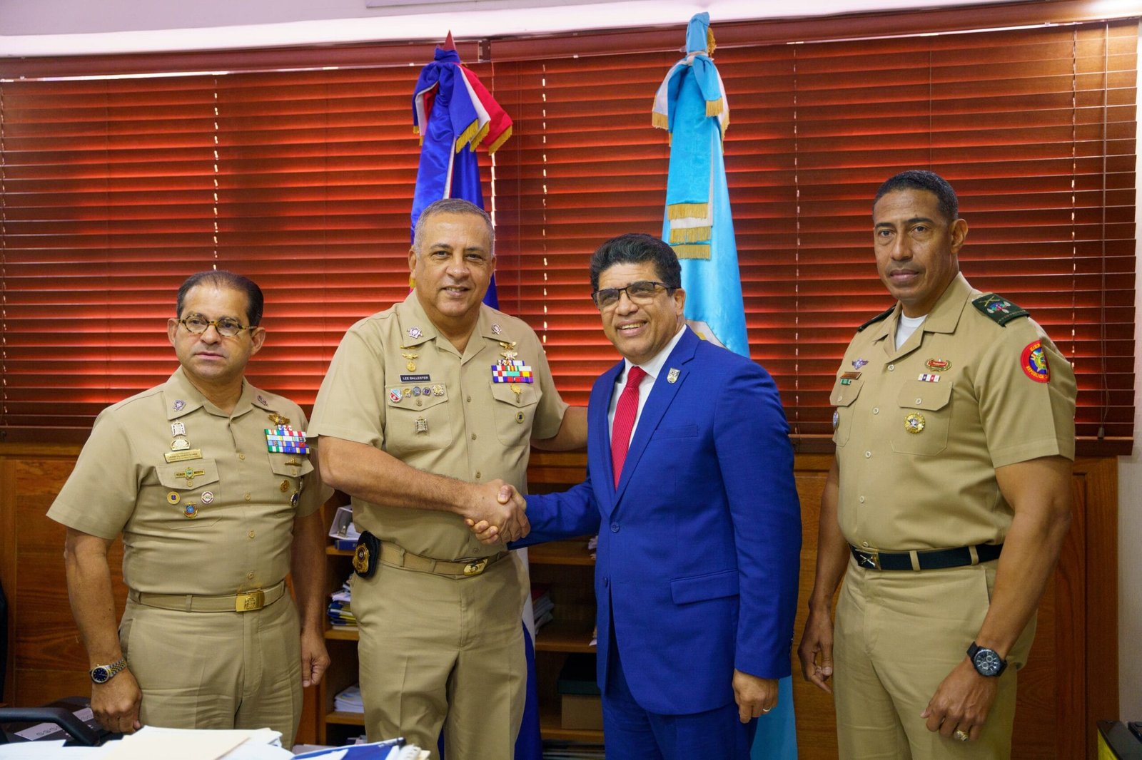 SANTO DOMINGO.- El Director General de Migración, Vicealmirante Luis Rafael Lee Ballester, ARD, se reunió en su despacho con el alcalde del municipio Santo Domingo Este, Dío Astacio, para socializar criterios y coordinar posibles soluciones a las inquietudes de los residentes en esa demarcación vinculadas a temas migratorios.