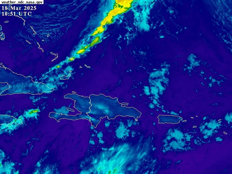Cielo despejado se aprecia hacia la mayor parte del litoral atlántico, sectores del sureste y suroeste del territorio dominicano, mientras se mantiene medio nublado a nublado hacia localidades de La Romana, El Seibo, Hato Mayor, el norte de San pedro de Macorís, San Cristóbal, San José de Ocoa, Monseñor Nouel, La Vega, Santiago, Santiago Rodríguez y las sierras del suroeste, donde ocurren chubascos aislados, producto de la interacción del viento con la orografía.