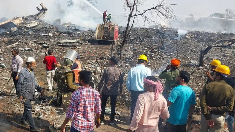 La explosión provocó el colapso total de la losa de hormigón armado del techo del edificio de la fábrica. El superintendente de policía Akshayraj Makwana confirmó el número de muertos y afirmó que la mayoría de las víctimas eran trabajadores migrantes del estado vecino de Madhya Pradesh y sus familias.