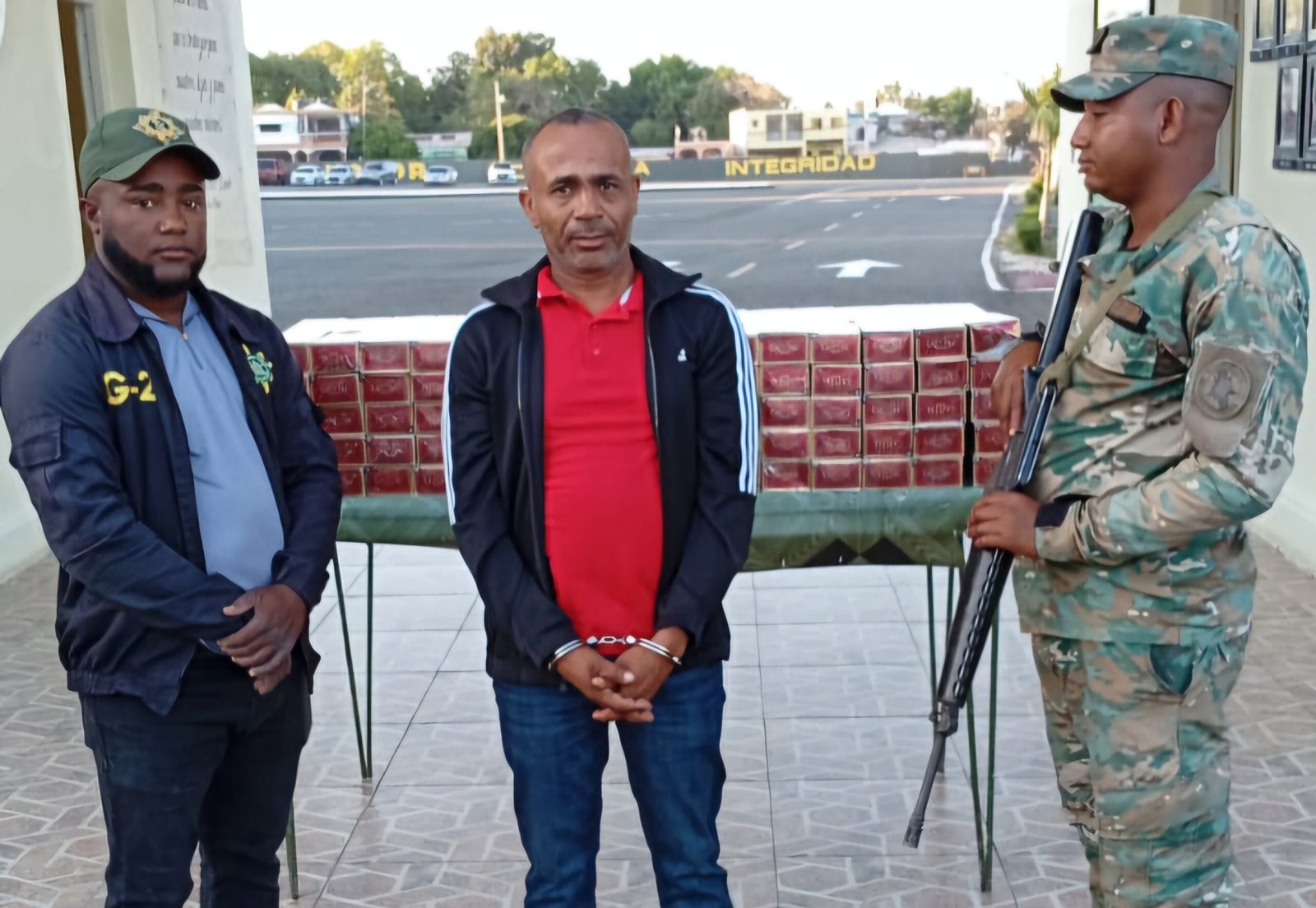Azua.- Miembros del Ejército de República Dominicana pusieron bajo custodia a un hombre que ocultaba en el baúl de un vehículo, 30 mil cigarrillos introducidos al país de manera ilegal y que no cuentan con la regulación de la Dirección General de Aduanas (DGA).