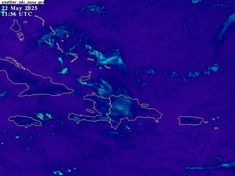 Las condiciones del tiempo sobre el país, permanecen dominadas por la incursión de partículas de polvo proveniente del Sahara, además de una circulación anticiclónica, ambos mantendrán un cielo de nubes dispersas y escasas precipitaciones durante las horas matutinas.