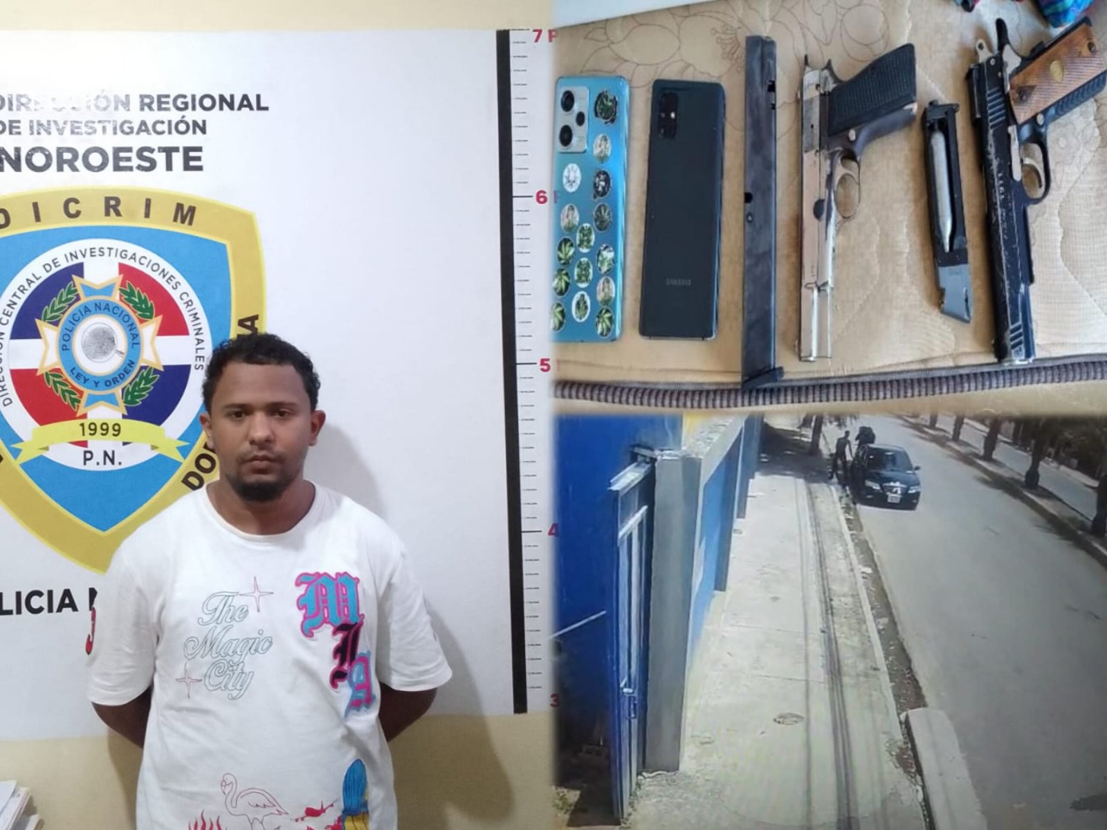 El hecho ocurrió a las 6:00 a.m. del jueves 6 de junio, cuando los agentes, en compañía del Ministerio Público, ejecutaban la orden de allanamiento y arresto No. 106-2025-514-2025, en la residencia del nombrado Jodalis Domínguez Rodríguez (a) El Flaco, de 20 años, ubicada en Santiago de los Caballeros.