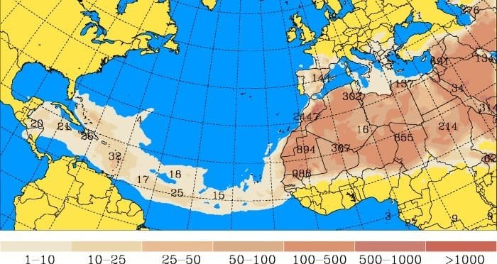 En cuanto al polvo del Sahara, continuará incidiendo sobre el territorio nacional, con una concentración de leve a moderada.
