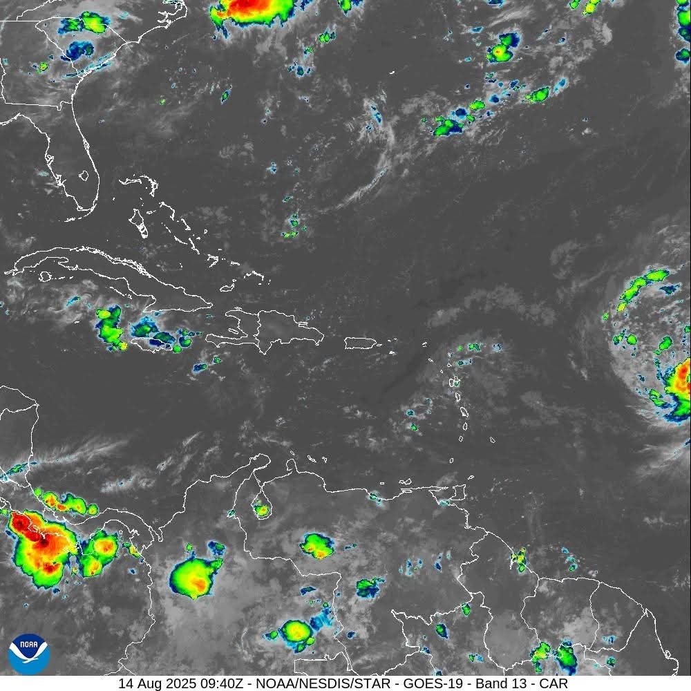 - La tormenta tropical Erin se ubica a 1,595 km al este de Las Antillas Menores. Avanza hacia el oeste a unos 28 km/h y se espera que mantenga este movimiento durante las próximas horas. Sus vientos máximos sostenidos ha aumentado en unos 85 km/h con ráfagas superiores y se pronostica un fortalecimiento gradual durante los próximos días. Se espera que Erin se convierta en huracán. Estamos monitoreando constantemente la evolución y trayectoria de este sistema tropical, es importante estar atentos a nuestras actualizaciones.