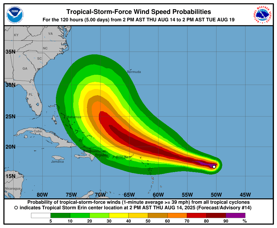 TORMENTA TROPICAL ERIN EMPIEZA A MOVERSE HACIA EL OESTE/NOROESTE