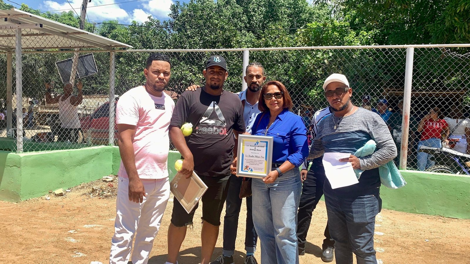 Dajabón.- El equipo de softball Los Novatos y Dyango Rosa del Kilómetro 4 realizó un emotivo acto de reconocimiento a la Licda. Milagros Peña, valorando su apoyo y colaboración en favor de la disciplina deportiva y de la juventud de la provincia.