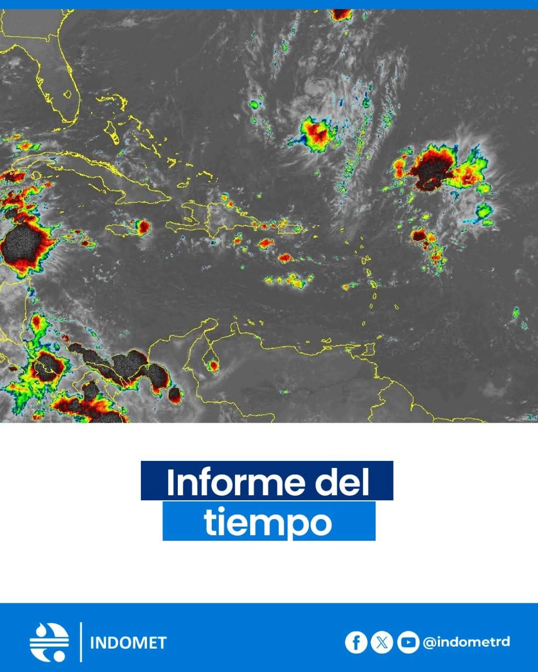 Después del mediodía, el gran contenido de humedad en nuestra masa de aire se combinará con los efectos asociados al ciclo diurno, generando nublados acompañados de aguaceros, tronadas y posibles ráfagas de viento hasta primeras horas de la noche, hacia las provincias: San Pedro de Macorís, San Cristóbal, San José de Ocoa, La Vega, Monseñor Nouel, Monte Plata, Azua, San Juan, Elías Piña, Dajabón, Independencia, Bahoruco, El Gran Santo Domingo, entre otras áreas.