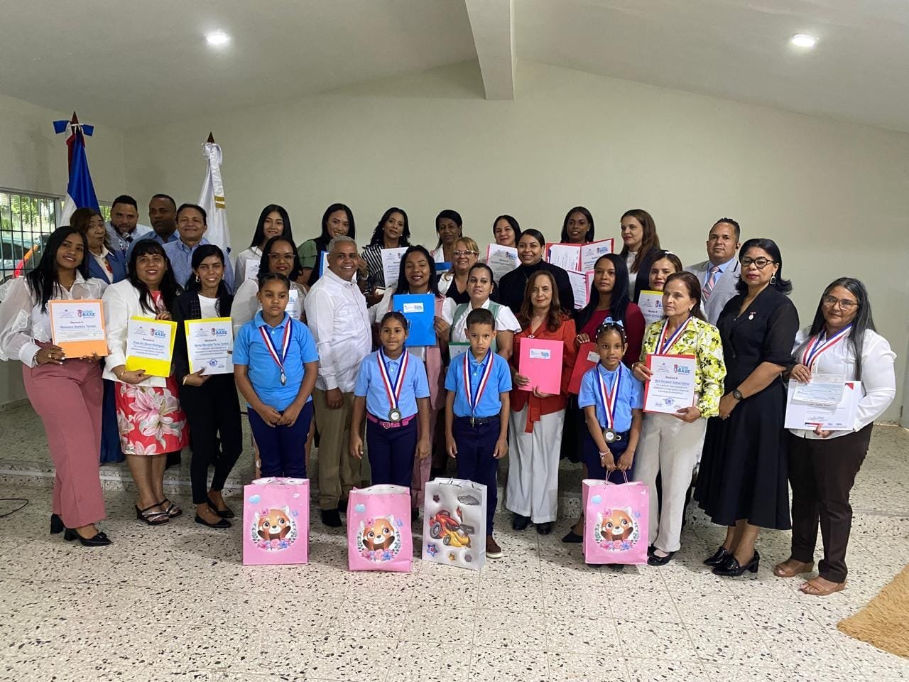 Fueron distinguidos centros como Padre Luis Variara, Sagrado Corazón de Jesús, Los Querubines, El Palo, El Buen Samaritano, Alida Antonia Torres, Hermanas Mirabal, Clara Luz Lora, San Ignacio Loyola, Juan Bosch, Cañada Grande, Anastasio Valle y Tigilda Vargas, junto a estudiantes participantes en el Festival Nacional de Lectura.