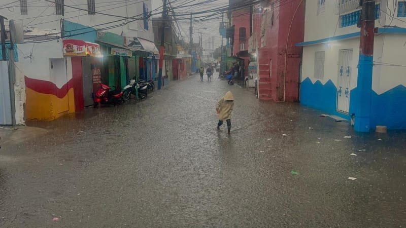 Santo Domingo.-Desde tempranas horas de la tarde del jueves en el sector Los Ríos, a pocos metros de la cañada Las 800, en los callejones La Piscina y La Gallera, varias viviendas se inundaron durante el paso de la tormenta tropical Melissa, producto del desbordamiento de los arroyos que las rodean.