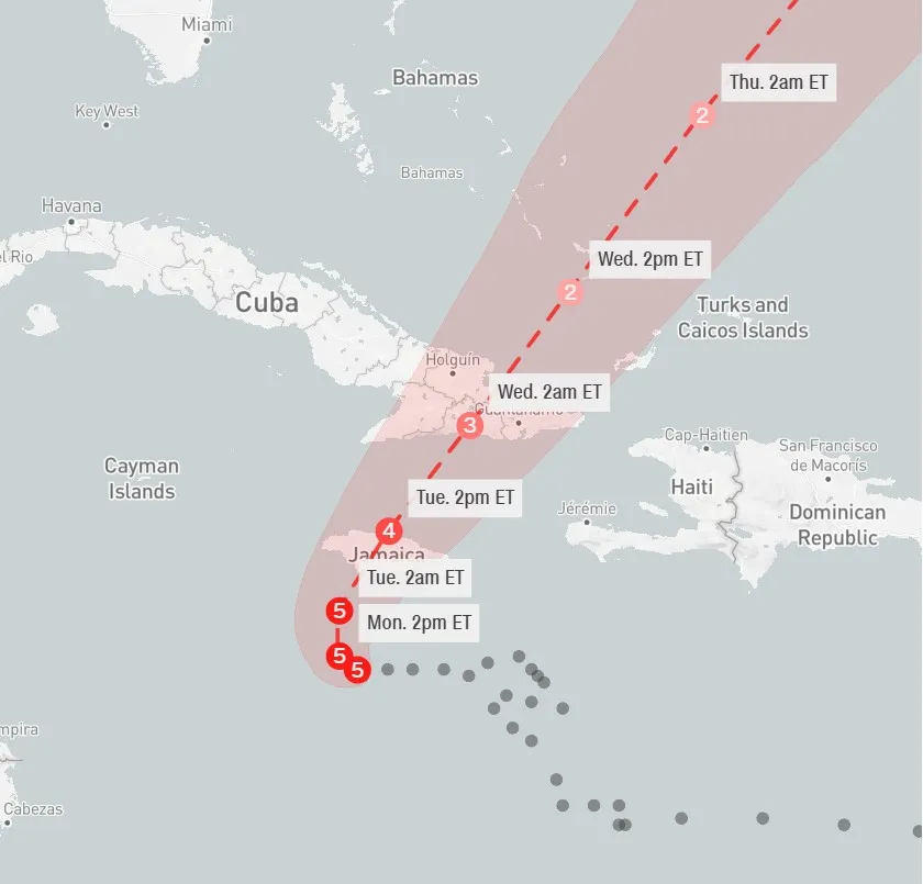 El huracán Melissa alcanzó este lunes la categoría 5 en la escala Saffir-Simpson, convirtiéndose en un ciclón extremadamente peligroso con vientos máximos sostenidos de 260 kilómetros por hora (160 mph).