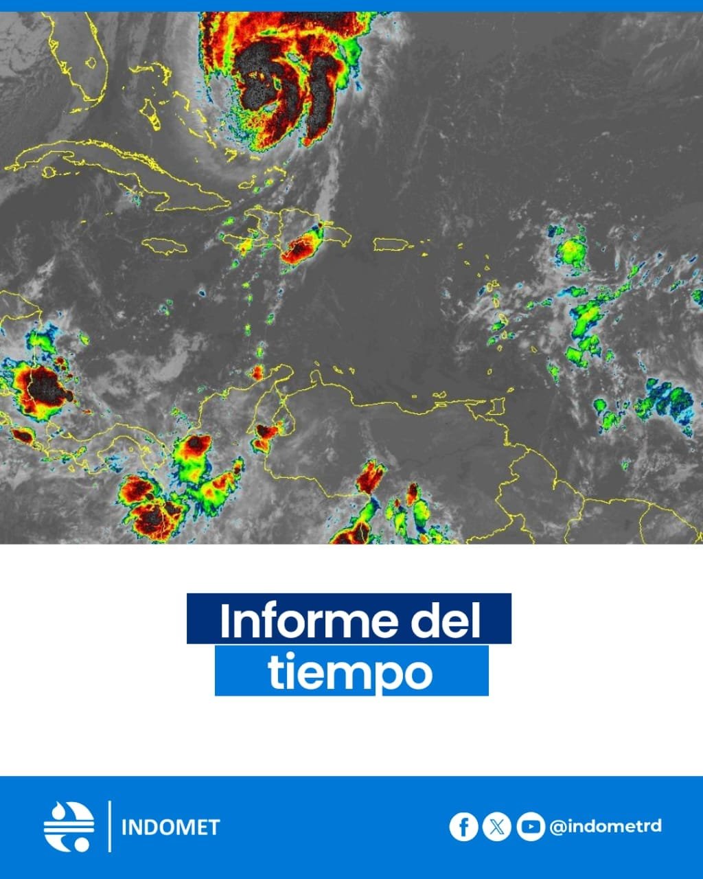 Hoy durante las horas matutinas, se prevén chubascos dispersos, acompañados de tronadas y ráfagas de viento, principalmente hacia la costa caribeña y el sureste, incluyendo al Gran Santo Domingo, producto del transporte de campos nubosos asociado a la vaguada inducida por el huracán Melissa a pesar de alejarse del país.