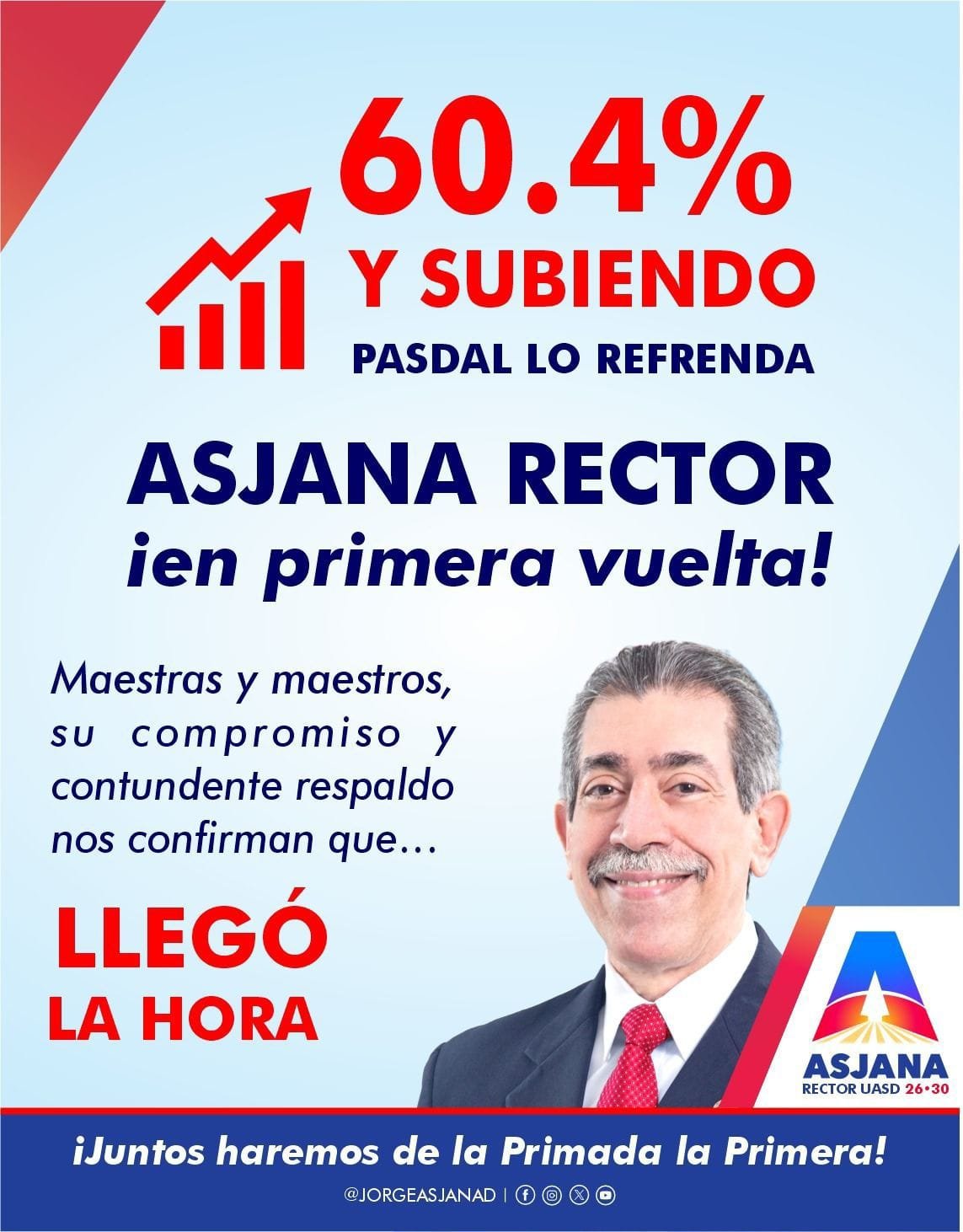El ascenso de Jorge Asjana fortalece su proyección como principal figura rumbo a la rectoría de la UASD 2026–2030, evidenciando un respaldo creciente entre la comunidad universitaria, que ve en su propuesta un camino firme hacia la transformación institucional.