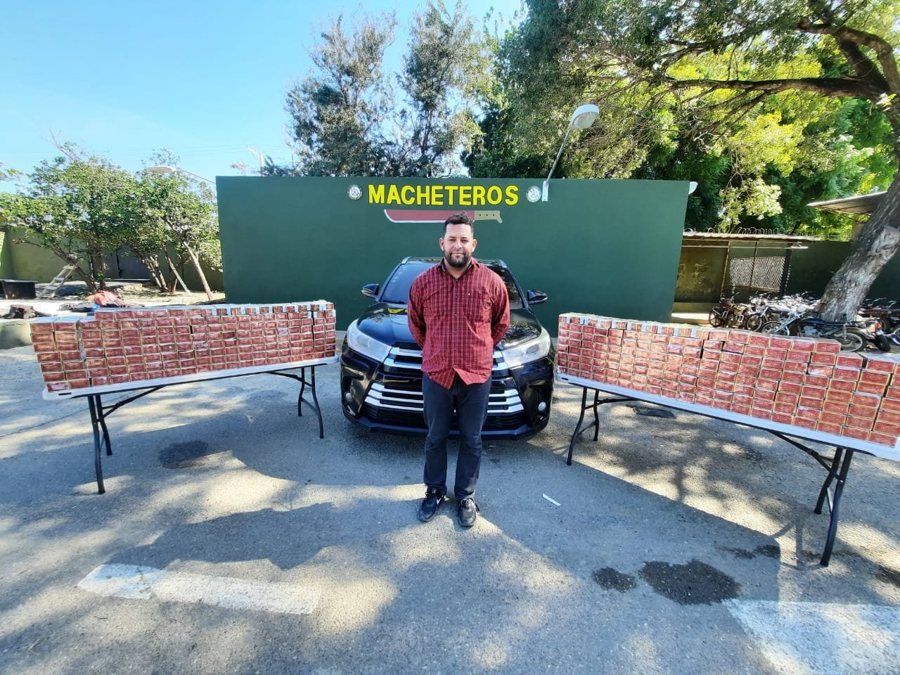 Al momento de la detención, fueron encontrados escondidos en diferentes partes del vehículo, cinco (5) cajas y cuarenta y ocho (48) paquetes de cigarrillos marca Capital, equivalentes a 298 paquetes, 2,980 cajetillas, para un total de 59,600 unidades.