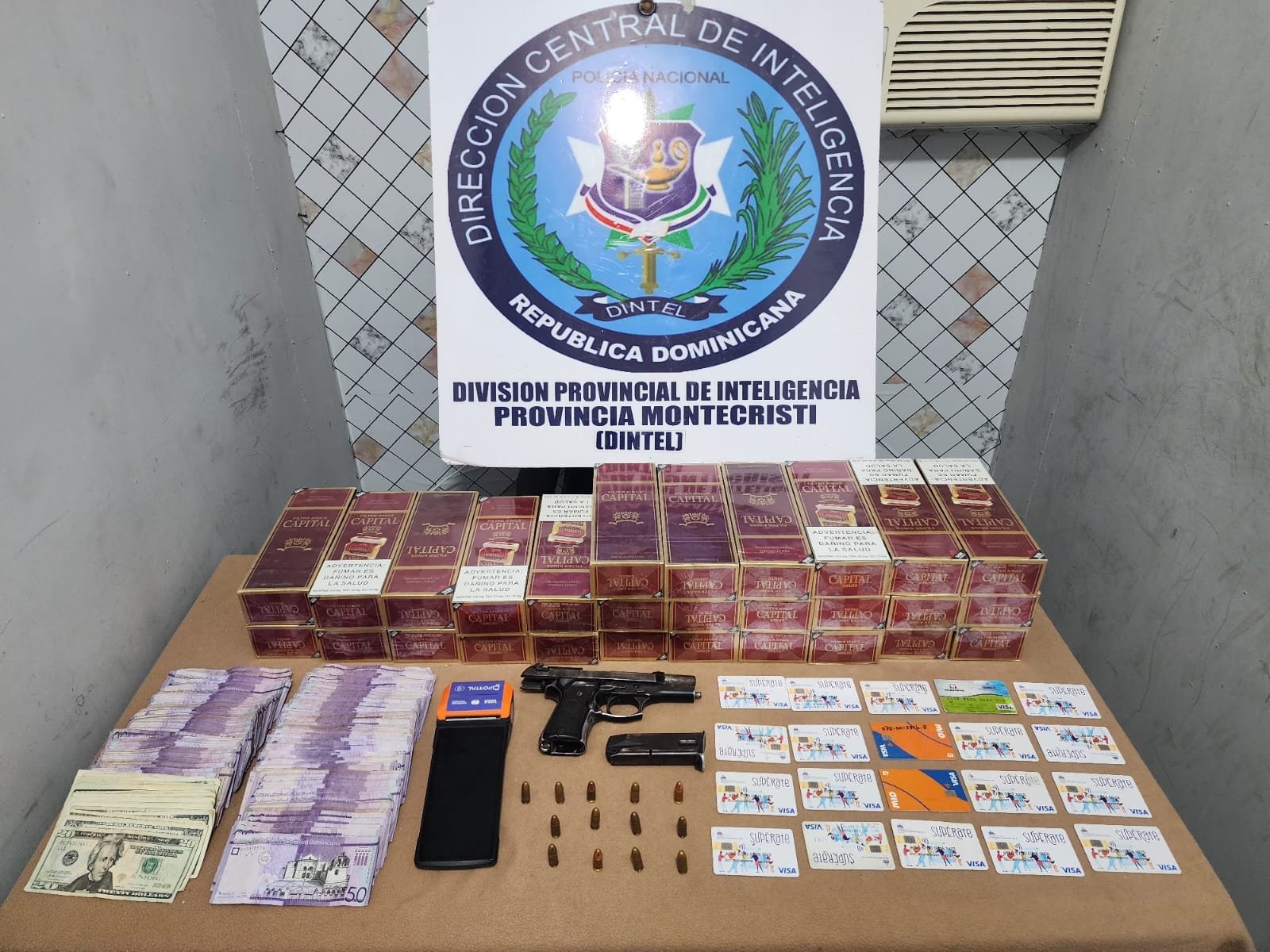 En la cocina de la vivienda, dentro de una freidora de aire, los agentes ocuparon veinte (20) tarjetas de solidaridad (Supérate), presuntamente empeñadas, además de once mil pesos dominicanos (RD$11,000.00) producto de la venta ilegal de lotería y ciento setenta y tres dólares estadounidenses (US$173.00) en efectivo. Posteriormente, en una segunda habitación, dentro de una caja, se ocuparon veintisiete (27) paquetes de cigarrillos marca Capital, conteniendo cada paquete diez cajetillas y cada cajetilla veinte unidades, para un total de cinco mil seiscientas (5,600) unidades, introducidas de manera ilegal al territorio nacional.
