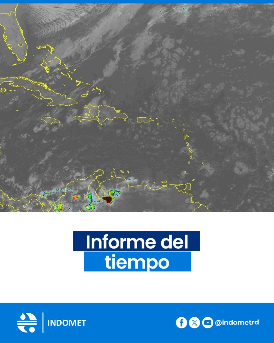 En consecuencia, prevemos incrementos nubosos generadores de aguaceros moderados a fuertes en ocasiones, tronadas y aisladas ráfagas de viento, los cuales serán de mayor intensidad y frecuencia durante la tarde y la noche sobre diferentes localidades de las provincias: Montecristi, Puerto Plata, Valverde, Dajabón, Santiago Rodríguez, Santiago, La Vega, Elías Piña, María Trinidad Sánchez, Espaillat, Hermanas Mirabal, Samaná y El Gran Santo Domingo, entre otras de las regiones noreste, noroeste, la Cordillera Central y la zona fronteriza, a medida que el sistema frontal continúe acercándose al país.